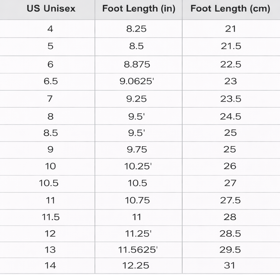 Sizing Chart - US Unisex
